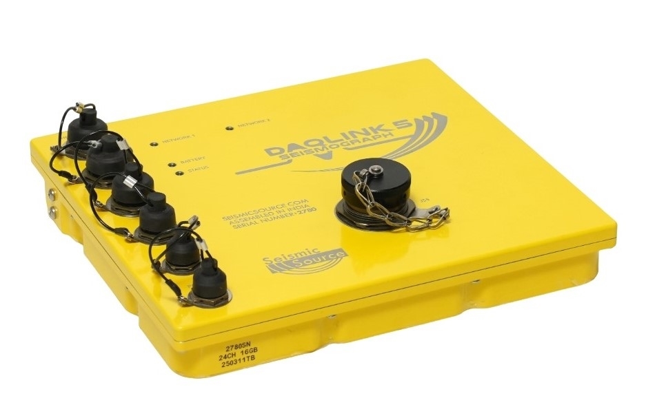 The Standalone DAQlink 5-48 Channel Seismograph is a portable 48-channel seismic system designed for versatile and reliable field operations. It can be configured for stand-alone monitoring, seismic refraction surveys, or distributed seismic reflection applications.