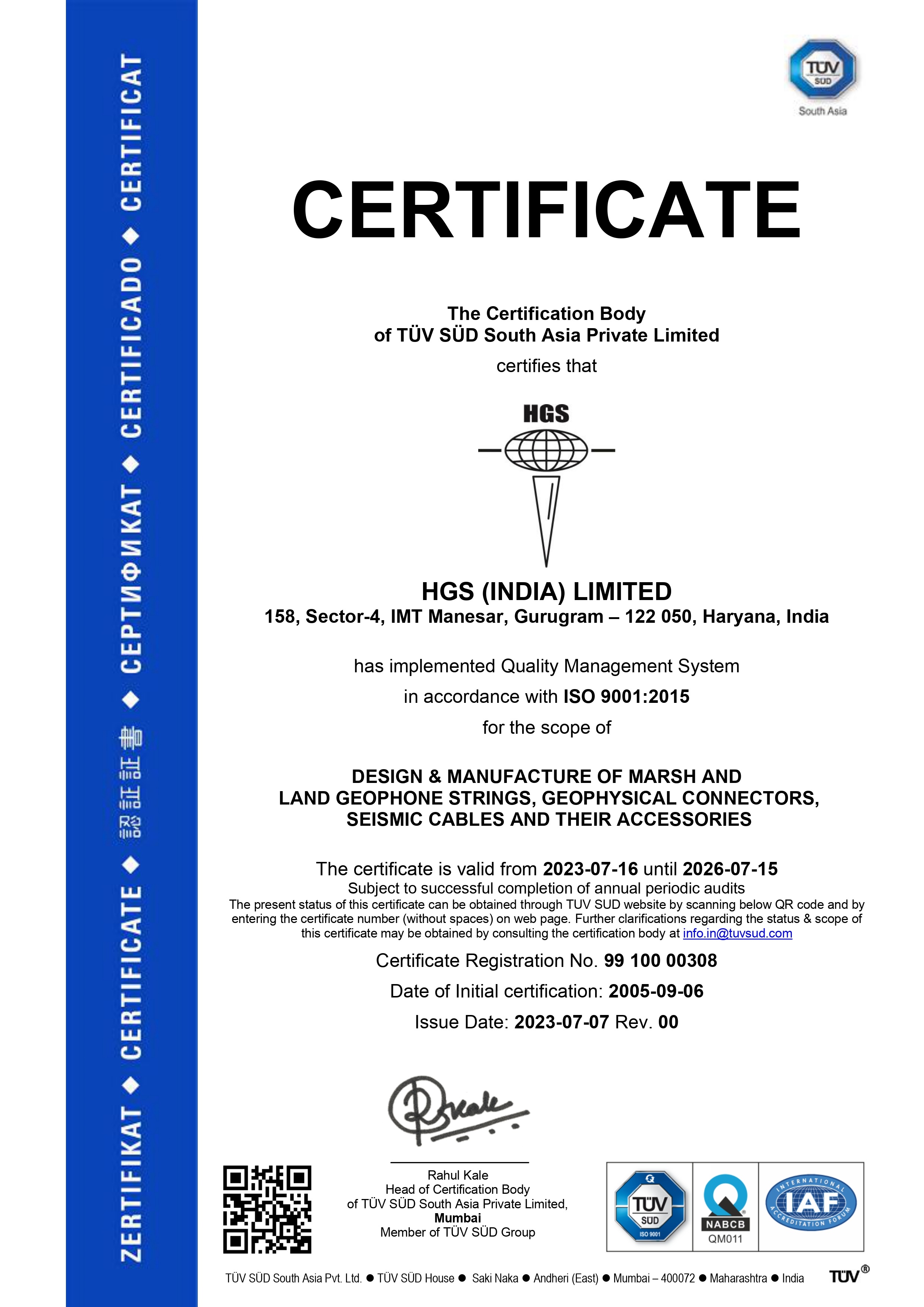 Quality Management System Certification by TÜV SÜD South Asia Pvt. Ltd.